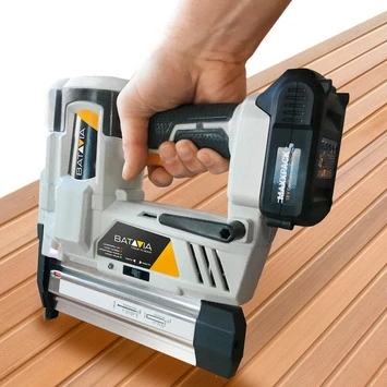 De Batavia accu tacker Maxxpack heeft een krachtig slagmechanisme waarmee je kan tacken in bijna elke ondergrond. De machine is geschikt voor spijkers tot 50 mm en nieten tot 40 mm. Ook kan je de diepte instellen zonder gereedschap. Het magazijn houdt 100 spijkers of nieten. Je kan kiezen tussen continu schieten of één voor één, zo heb je meer controle over de accu tacker. Zodat je goed zicht hebt op je werkveld heeft de tacker een LED-werklamp.