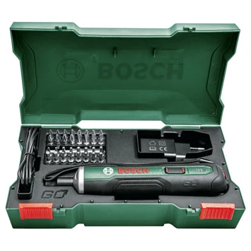 De Bosch accu schroevendraaier PushDrive is een compacte en handige 3.6V schroevendraaier. Met de Push&Go functie is het niet nodig om op een knop te drukken. De PushDrive start automatisch na lichte druk op de schroef. Ideaal voor iemand die grote projecten wil afronden. De PushDrive beschikt over een neutrale stand, deze biedt de mogelijkheid om handmatig te schroeven. De Bosch accu schroevendraaier PushDrive ligt heel aangenaam in de hand en wordt standaard geleverd in een robuuste koffer met 32-delige bitset en Micro-USB oplader. De nieuwe PushDrive van Bosch, de ideale accuschroevendraaier in borstzak formaat.