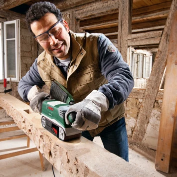 De Bandschuurmachine Bosch Pbs 75 Ae heeft een grote schuurband om twee wielen die werkt als een rupsband. Het krachtige en robuuste model heeft een motor met een vermogen van 750 watt, die zorgt voor een hoge afname van materiaal. Daarmee is deze schuurbandmachine ideaal voor zwaar schuurwerk en het afschuren van grote hoeveelheden materiaal. De bandschuurmachine heeft een automatisch bandsysteem dat de band tijdens het schuren in de juiste positie houdt. De schuurmachine bevat een traploze toerentalinstelling voor aangepast werken, waardoor de bandsnelheid via een drukschakelaar met geïntegreerd stelwiel kan worden geregeld. Kortom, de Bandschuurmachine Bosch Pbs 75 Ae is van alle gemakken voorzien.