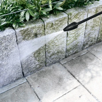De hogedrukreiniger is uitgerust met een spuitpistool, hogedrukslang van 4 m, één spuitlans, vuilfrees met roterende puntstraal om hardnekkig vuil snel te verwijderen en waterfilter om de pomp te beschermen tegen vuildeeltjes. Met de extra Home Kit inclusief terrasreiniger T 150 en 500 ml Patio & Deck reinigingsmiddel maakt je grotere oppervlakken rondom het huis spatvrij schoon.