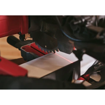Bij de meeste afkortzagen is de zaagkop aan de stangen bevestigd die bij het zagen aan de achterkant van het product uitsteken. De SKIL 1310 heeft echter stationaire stangen en een glijdende zaagkop, wat betekent dat de zaag dicht bij een muur kan worden geplaatst. De tafelverlengstukken voor langere werkstukken kunnen helemaal worden ingeklapt en er is zelfs een extra handgreep voor gemakkelijk dragen. Bevestiging van een werkstuk is gemakkelijk met het unieke snelklemsysteem dat veel sneller is dan gebruikelijke klemsystemen. Zaaghoeken kunnen traploos worden ingesteld voor nauwkeurig schuin en verstek zagen en vooringestelde aanslagen garanderen een probleemloze instelling van de meest gebruikte hoeken. De 1310 wordt geleverd met een grote stofzak en geïntegreerde stofzuigeraansluiting in de aluminium beschermkap. De SKIL 1310 beschikt over een laser op netvoeding die duidelijk de zaaglijn aangeeft. Deze is gemakkelijk in te stellen, een groot pluspunt dat optimale nauwkeurigheid en flexibiliteit garandeert om de laserlijn aan de linker- of rechterkant van het zaagblad te projecteren. Model 1310 AA wordt geleverd met een 216 mm zaagblad met 40 tanden met hardmetalen punten, extra fijn voor uitstekende resultaten.